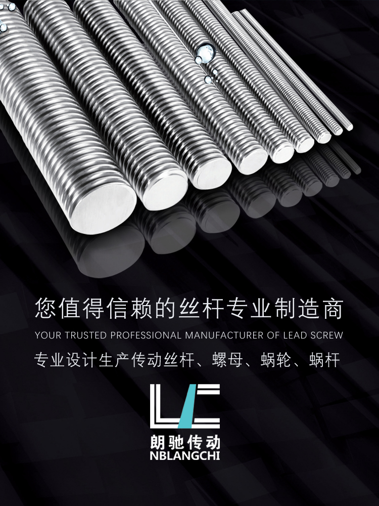 • 寧波朗馳傳動科技有限公司專業(yè)生產傳動、升降、推拉、緊固等作用的梯形螺紋絲桿和螺母。螺紋標準有:國標GB、德標DIN103、美標ACME等單頭、多頭及左右旋向的梯形螺紋。絲桿材質有碳鋼、合金鋼、不銹鋼、銅、鋁等;螺母材質有錫青銅、聚甲醛(POM)、碳鋼、鑄鐵、易切削鋼等。可按客戶要求定制特殊規(guī)格的絲桿螺母、M0.5-M6模數的蝸輪蝸桿。